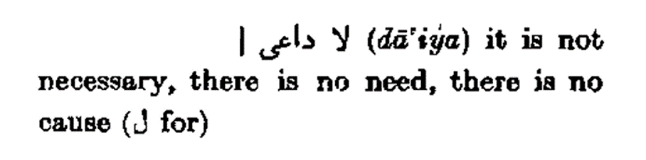 لا داعي (dā’iya) it is not necessary, there is no need, there is no cause (ل for)
