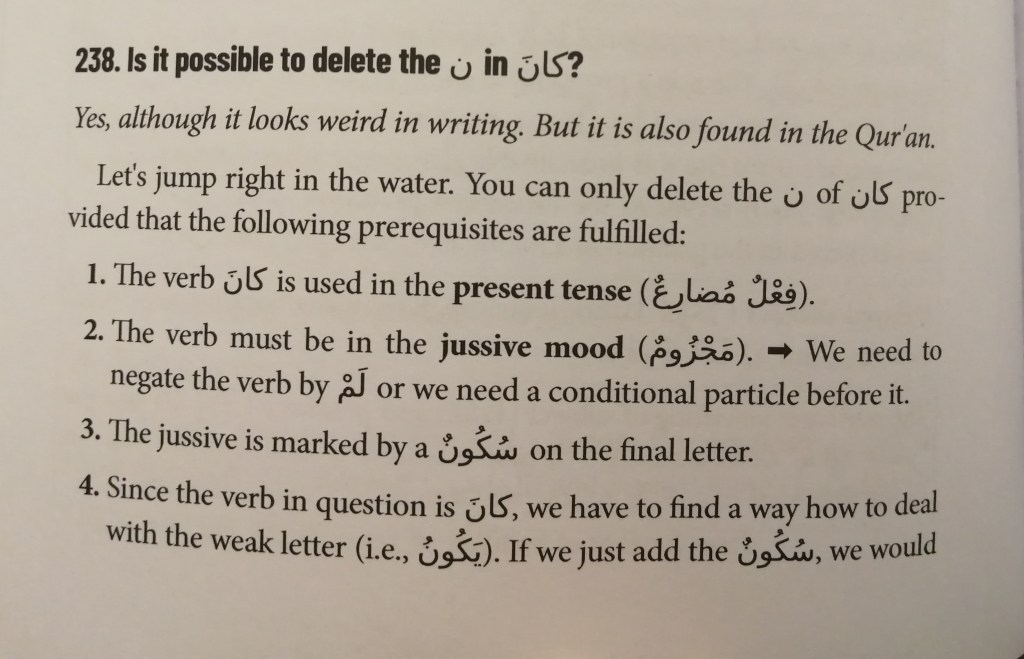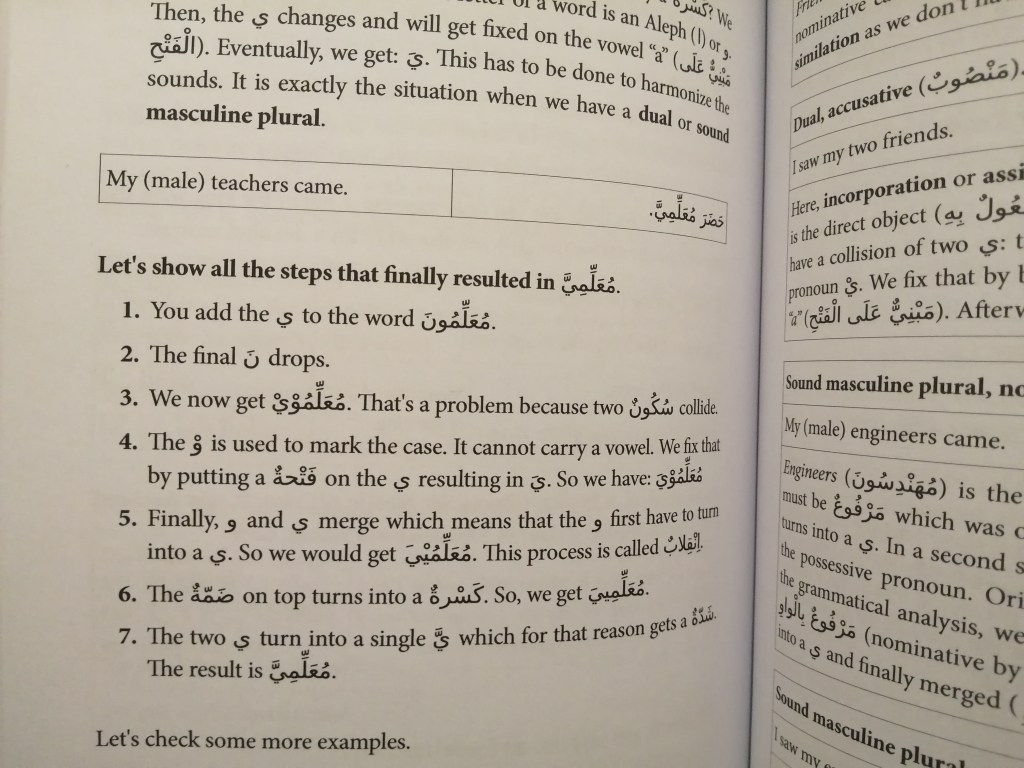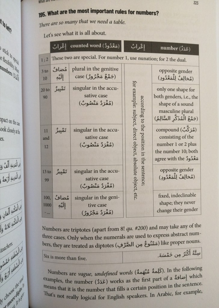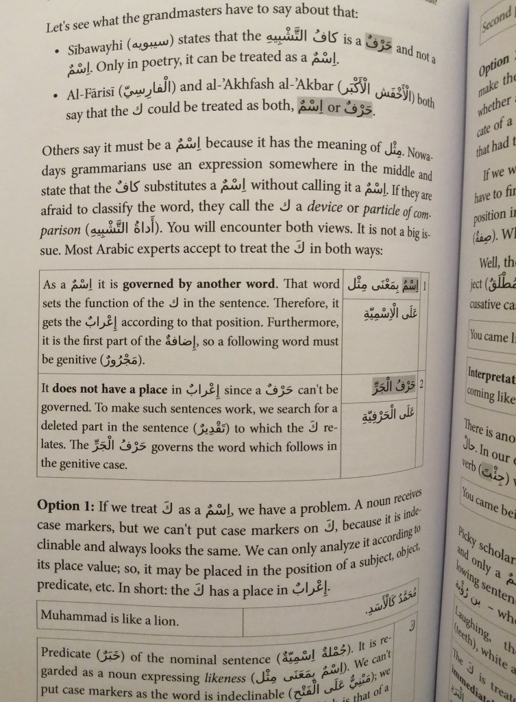 And another thing I love about the book is that the author not only mentions the differences between the grammars of Classical and Modern Standard Arabic (or differences of opinion between grammarians), but he also explains step-by-step how the grammar works in each case.