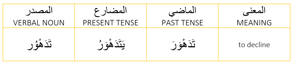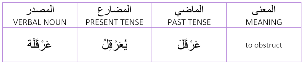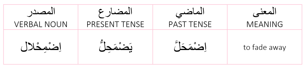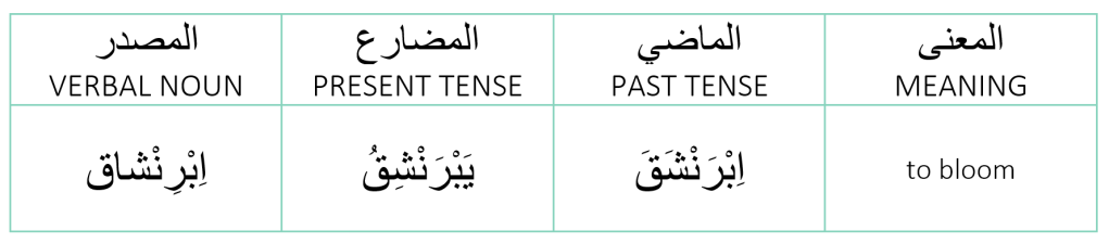 To model these forms, we’ll use ف-ع-ل-ل to represent the four root letters.