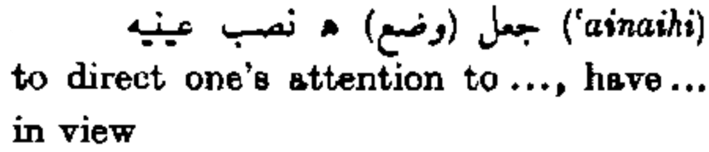 جعل (وضع) هـ نصب عينيه (‘ainaihi) to direct one’s attention to…, have … in view