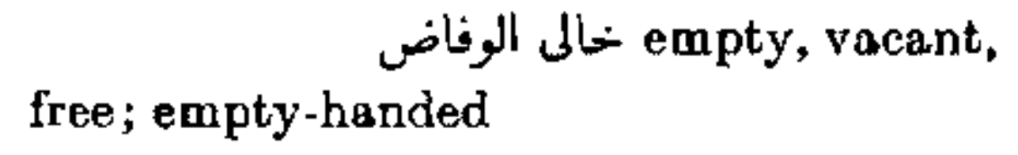 خالي الوفاض empty, vacant, free; empty-handed