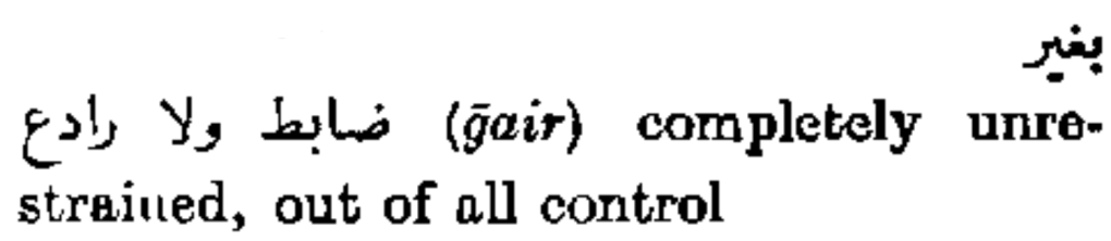 بغير ضابط ولا رادع (ḡair) completely unrestrained, out of all control
