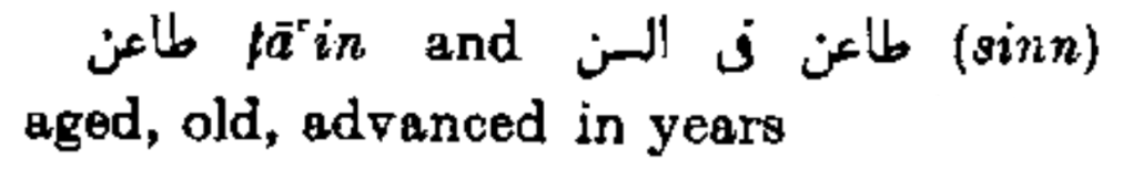 طاعن ṭā’in and طاعن في السن (sinn) aged, old, advanced in years