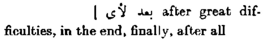 Example: “وَصَلنا إلى القَصرِ العَظيمِ بَعدَ لَأْي”