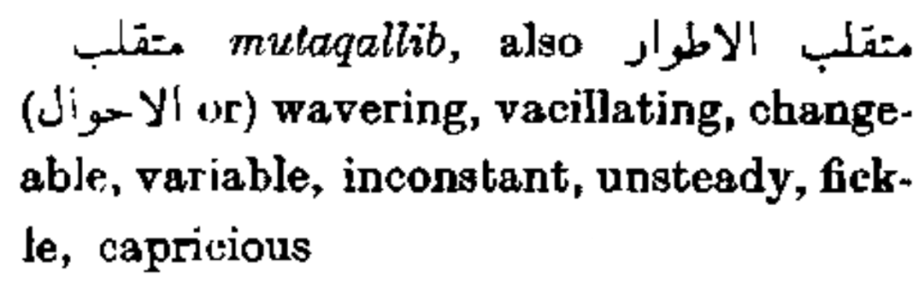 Example: “كانَ في تِلكَ الأَيّامِ مُتَقَلِّبَ المِزاج”