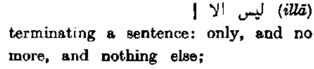 ليس إلا (illā) terminating a sentence: only, and no more, nothing else