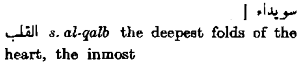 سويداء القلب s. al-qalb the deepest folds of the heart, the inmost