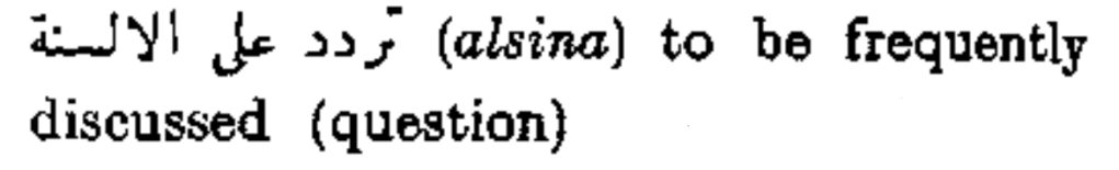 تردد على الألسنة (alsina) to be frequently discussed (question)