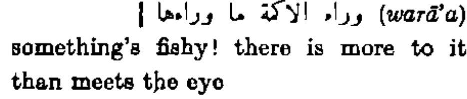 وراء الأكمة ما وراءها (warā’a) something’s fishy! there is more to it than meets the eye