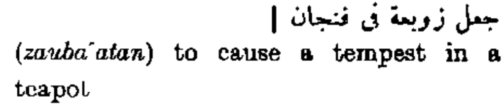 جعل زوبعة في فنجان (zauba’atan) to cause a tempest in a teapot