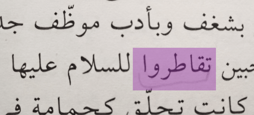 This reminded me that we looked at a phrase from the root ق-ط-ر in the post Reading Arabic Literature: Snippets From This Week: القاطرة دماً.