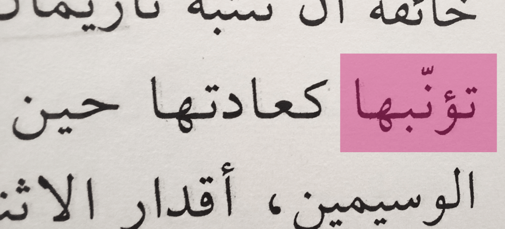 So the form II verb أَنَّبَ / يُؤَنِّبُ, from the hamzated root ء-ن-ب, means “to blame or scold”. (Take a look at Seats of the Hamza (ء) for more on the hamza!)