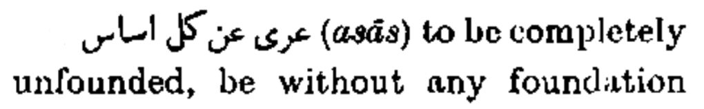 عري عن كل أساس (asās) to be completely unfounded, be without any foundation