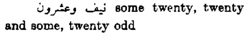 Example: “شارَكَ في المُؤْتَمَرِ بِالأَمْسِ نَيِّفٌ وَعِشْرونَ مُمَثِّلاً”