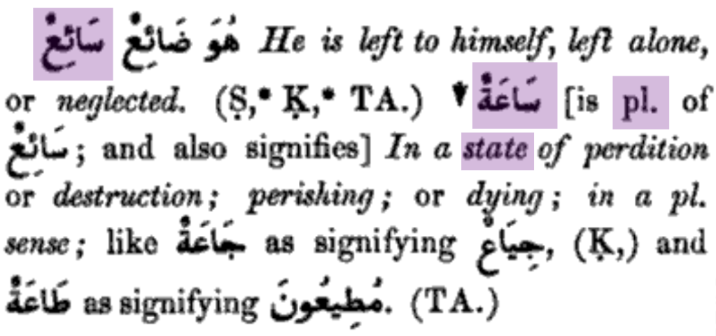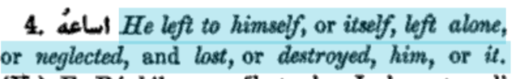 So we can see that the root س-و-ع is generally associated with abandonment—the type that, with the passing of hours, can lead to demise.
