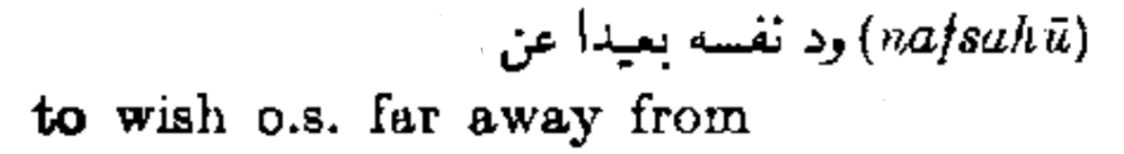 ود نفسه بعيدا عن (nafsahū) to wish o.s. far away from