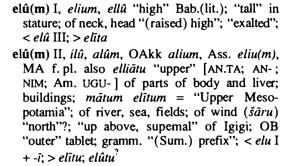 Thank God for the antidote of blushing: distraction. And that’s why I’m launching into another post about Arabic-Akkadian roots. This time, we’re looking at these three Semitic roots which are present in both languages: ʿ-l-w, ʾ-k-l, and b-k-y.